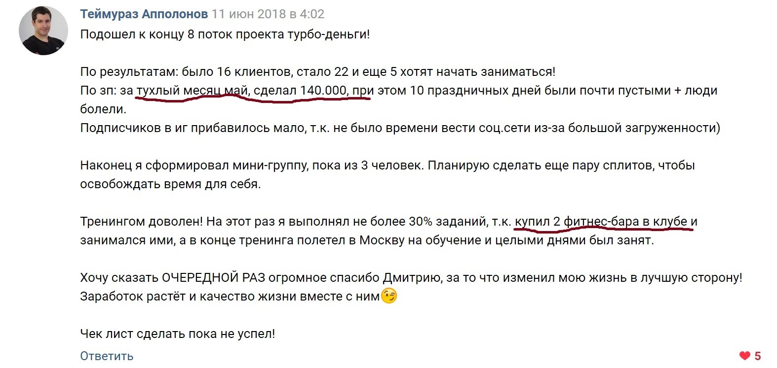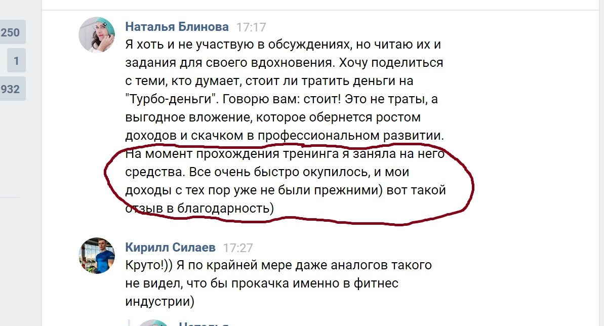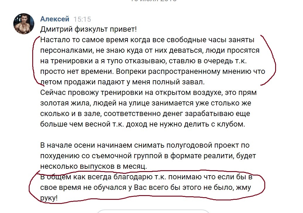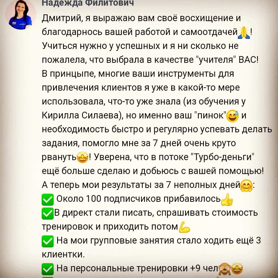 Общение с успешными Тренерами-Практиками, которые уже прошли тот путь, который еще предстоит пройти тебе, увеличили свои доходы кратно и стали топовыми тренерами не только в своем клубе, но и в своем городе, расширяет сознание: ты понимаешь, как много существует способов организовать свою работу и жизнь, так, чтобы это приносило максимальный кайф и максимальный доход!