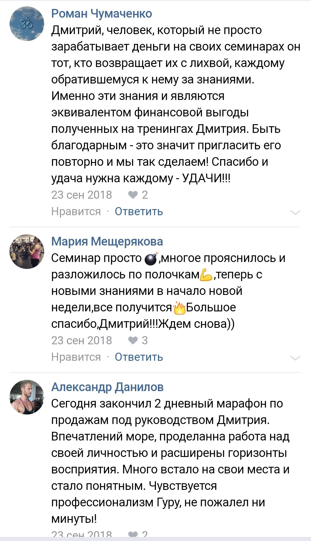 Обучил продажам и маркетингу в сфере фитнеса свыше 3000 тренеров и руководителей фитнес-клубов России, Казахстана, Беларуси, Украины, Прибалтики, Израиля, Франции, США, в архиве – свыше 700 благодарных письменных и видео-отзывов от участников семинаров и тренингов Дмитрия.